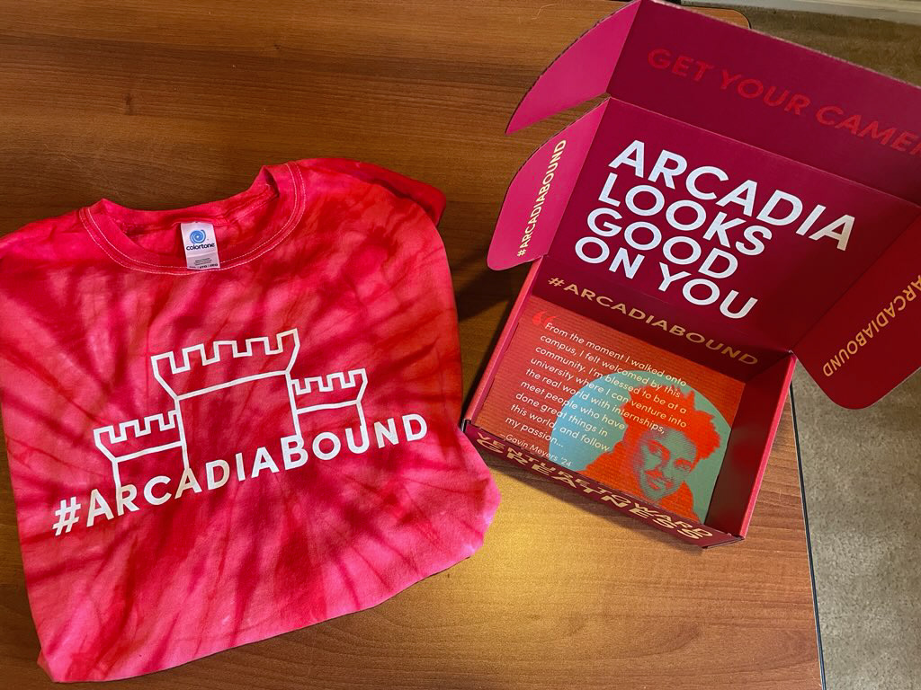 T-shirt design for students who deposited to the university, delivered in an Arcadia-branded box.